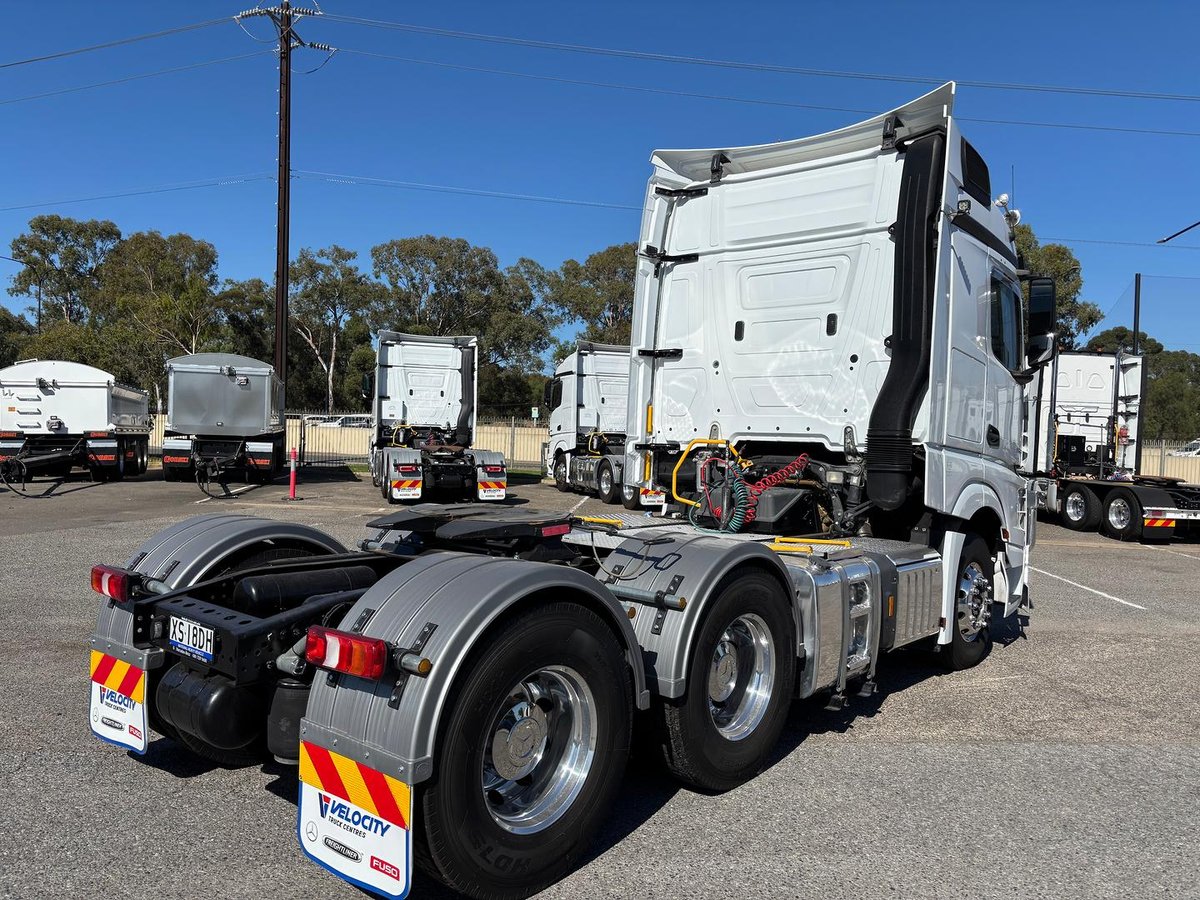 2020 Mercedes Benz Actroskg GCM prime mover, 530 hp 13 litre engine, 12 speed AMT transmission, air bag suspension, Alloy bull bar, integrated sleeper cabin, Jost 50mm fixed greaseless turntable, new drive guards, 10 stud alloy wheels, UHF, low km in excellent condition